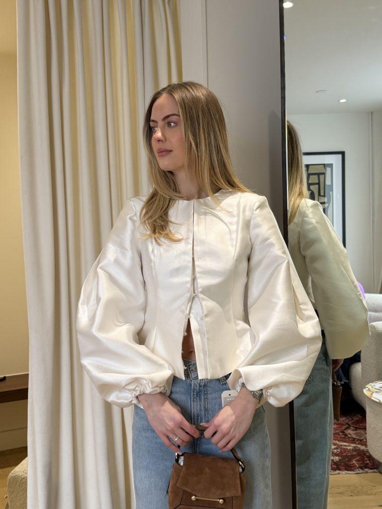 Damson Madder is one of Fenwick’s hero brands, and this look really lets it shine. The jacket takes centre stage, so the rest of the outfit steps back, subtly picking up tones from the print to create a cohesive, polished look. It’s a perfect example of how a single standout piece can define an outfit while keeping styling effortless and elegant.